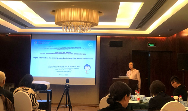 香港大学基层医疗健康教研中心总监、香港护理专科学院荣誉院士、香港大学护理学院教授陈肇始女士,介绍了香港数字戒烟项目及效果。她提到,香港控烟已经取得了显著的进展,其中一个主要策略,就是提高戒烟服务能力,尤其是推广有效的戒烟工具。在数字戒烟方面,香港大学的科研团队开展了包括基于信息的应用程序、聊天机器人、互动型视觉效果增强技术等在内的临床研究,评估了数字戒烟工具的可行性、接受度、戒烟干预能力,以及对预防复吸的效果。