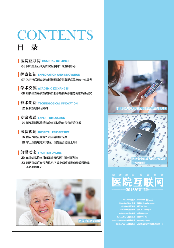 网络安全已成为医院互联网+ 的发展障碍;医院互联网无障碍;用互联网思维重构公立医院的宣传和营销体系;佑安医院互联网+ 试点落地医保办
