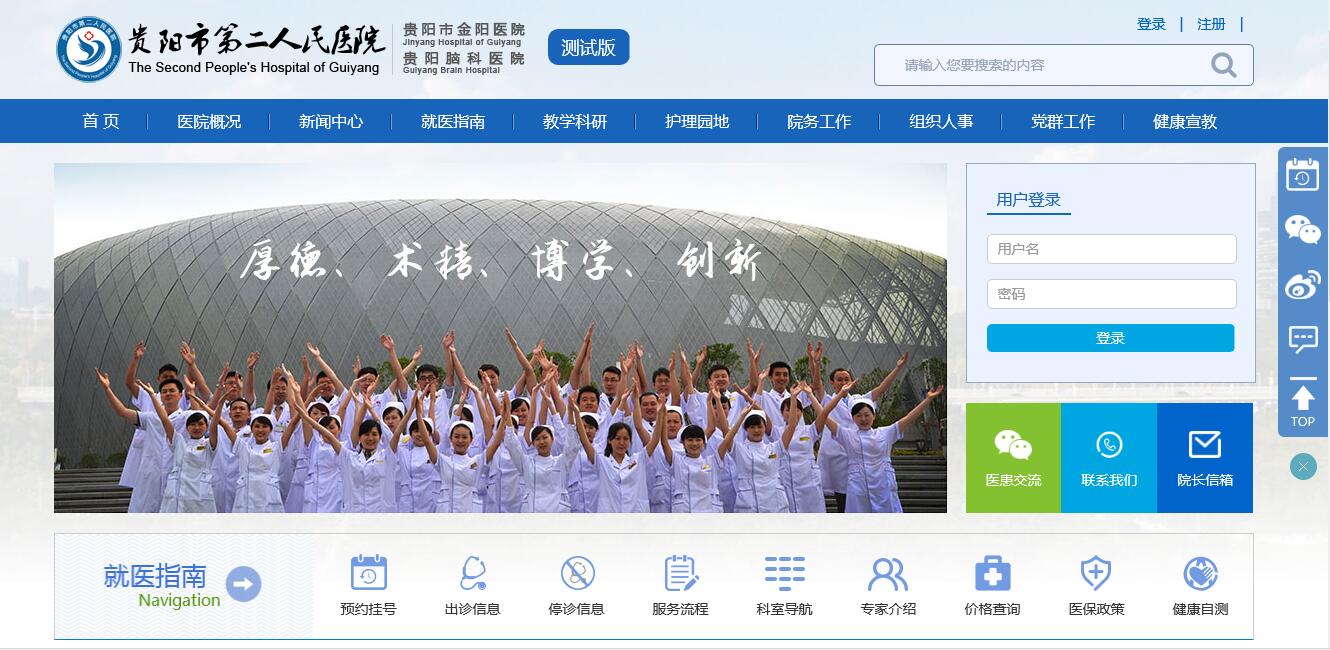 贵阳市第二人民医院是一所拥有近80年历史的大型三级甲等综合医院,原址位于老城区市南路,2007年10月搬迁至观山湖区金阳南路现址,挂牌为贵阳市金阳医院。医院编制床位2000张,实际开放床位1075张,设有34个临床科室、8个医技科室。现有职工1455人,其中高级职称专业人员175人,博士、硕士生研究生90余人,省管专家2人、市管专家8人。