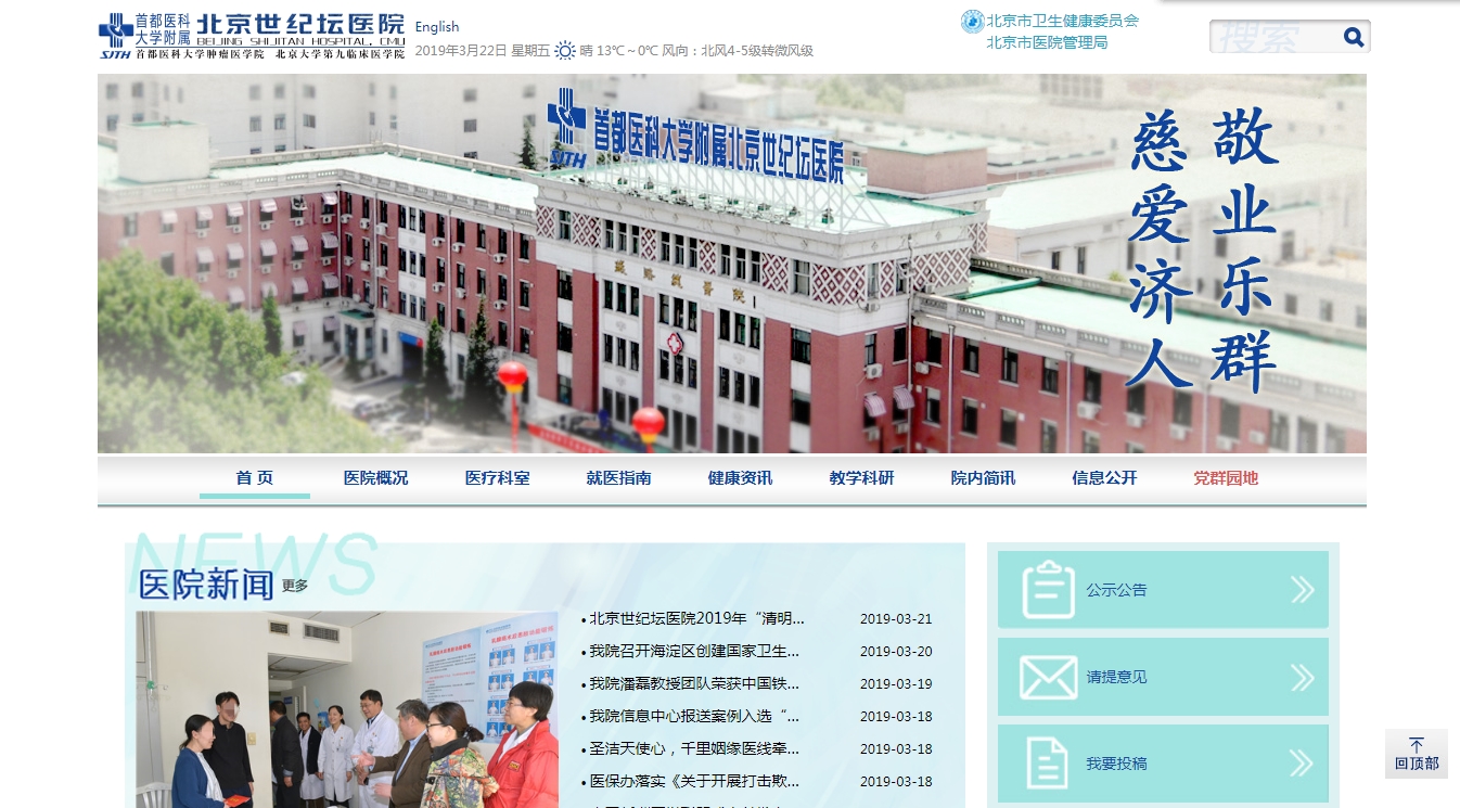 首都医科大学附属北京世纪坛医院(北京铁路总医院),原为铁道部北京铁路总医院,创建于1915年,是有着百年悠久历史的集医、教、研、防于一体的综合性三级甲等医院,是首都医科大学附属医院、首都医科大学肿瘤医学院和北京大学第九临床医学院。1989年通过全国首批三级甲等医院评审,先后被卫生部授予“全国百佳医院”、世界卫生组织授予“爱婴医院”、铁道部授予“铁路十佳医院”、北京市卫生局授予首都地区综合医院“双十佳人民满意医院”等称号。自2001年以来,医院被评为…